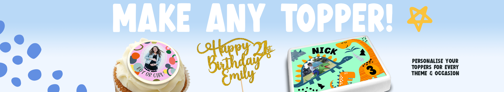 Love baking? So do we! We can help you create high-quality, personalised edible and glitter toppers for every occasion! Choose from hundreds of customisable design templates, whether you're planning a fairy-tale birthday party or a celebrating a life milestone.