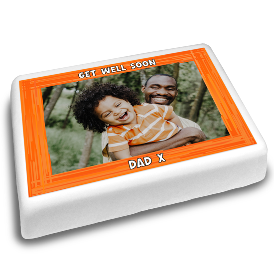 Have a loved one that's feeling under the weather? Make their day with our custom get well soon orange swirl border topper! We all know that cake makes everything better! Personalise this design with your favourite photos of them to brighten their day!