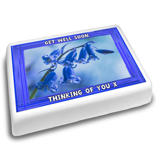 Have a loved one that's feeling under the weather? Brighten their day with our custom get well soon blue swirl border topper! We all know that cake makes everything better! Personalise this design with their favourite photo and add a custom message to make them smile!