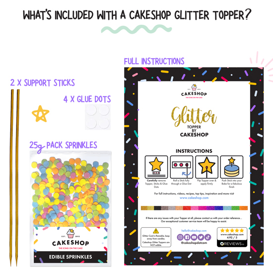 25g Pack of Edible Sprinkles: Sprinkle some magic on your cake for that extra touch of sparkle and fun!